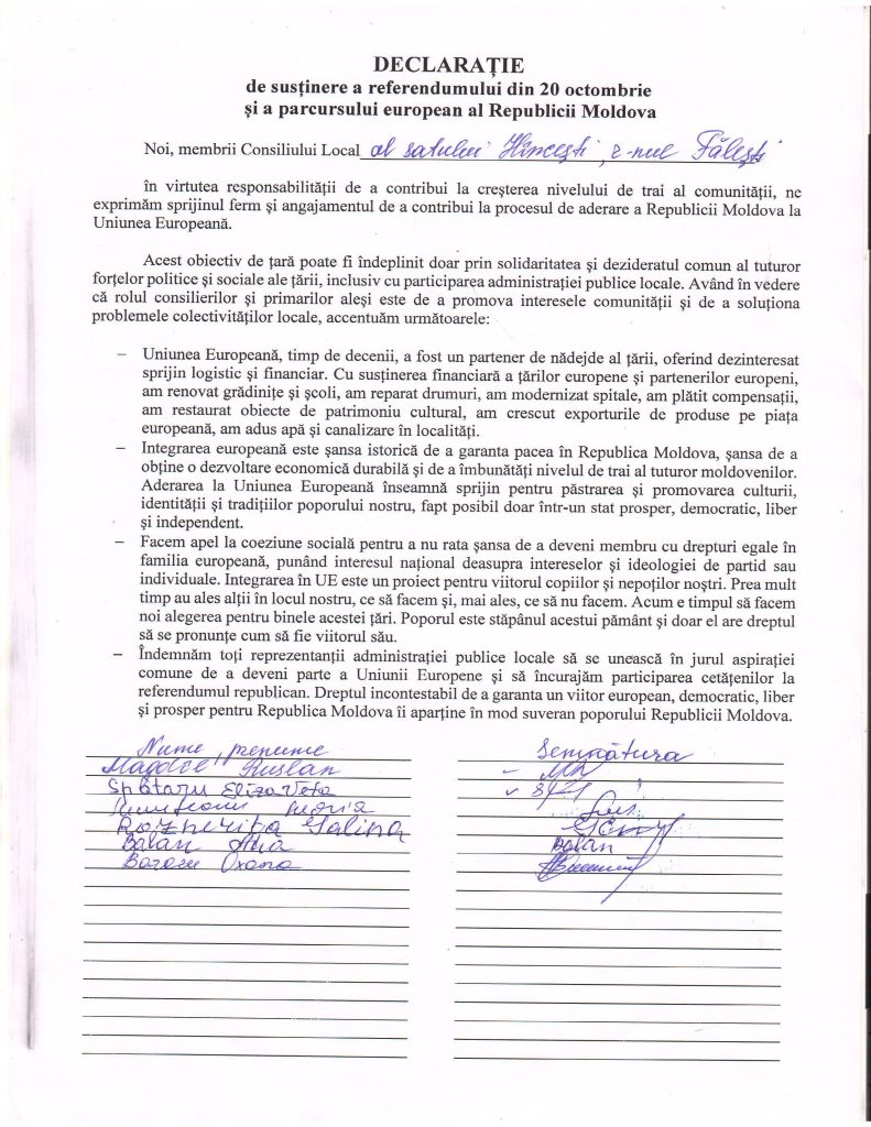 Declarație de susținere a referendumului din 20 octombrie și a parcursului european al Republicii Moldova