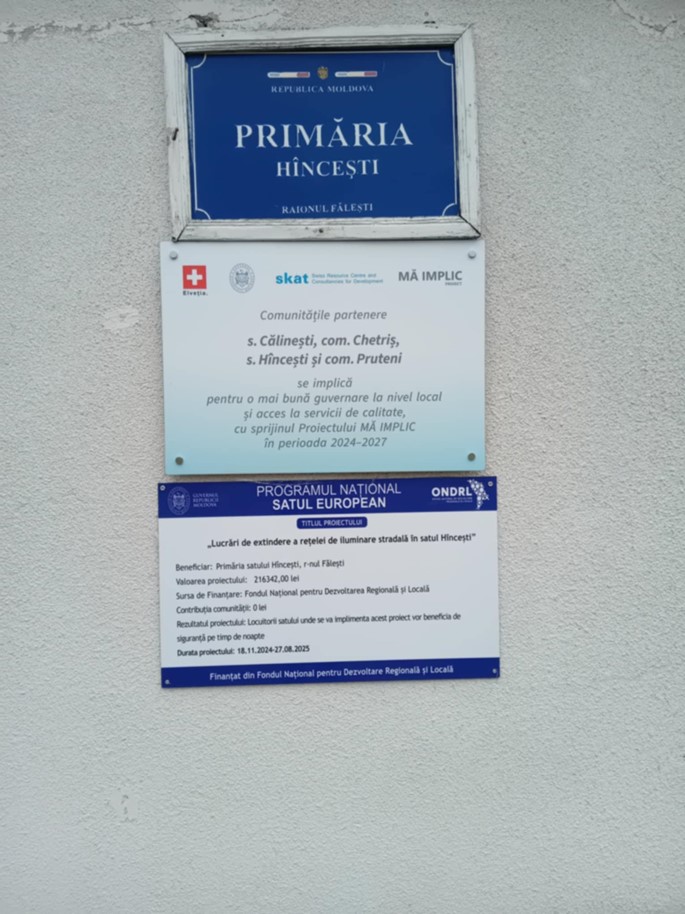 Vă aducem la cunoștință că în perioada lunii noiembrie 2024 pe teritoriul satului au fost executate lucrări la proiectul ,, Extinderea iluminatului stradal în satul Hîncești”. Acest proiect este finanțat de către ONDRL în cadrul Programului Național Satul European II 2024.